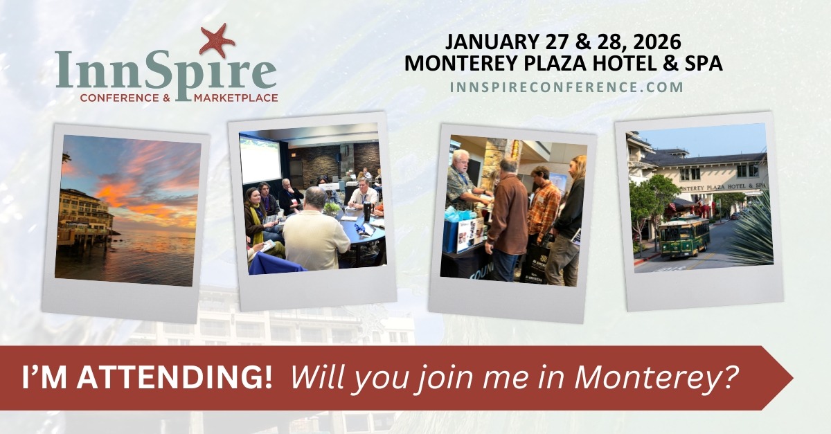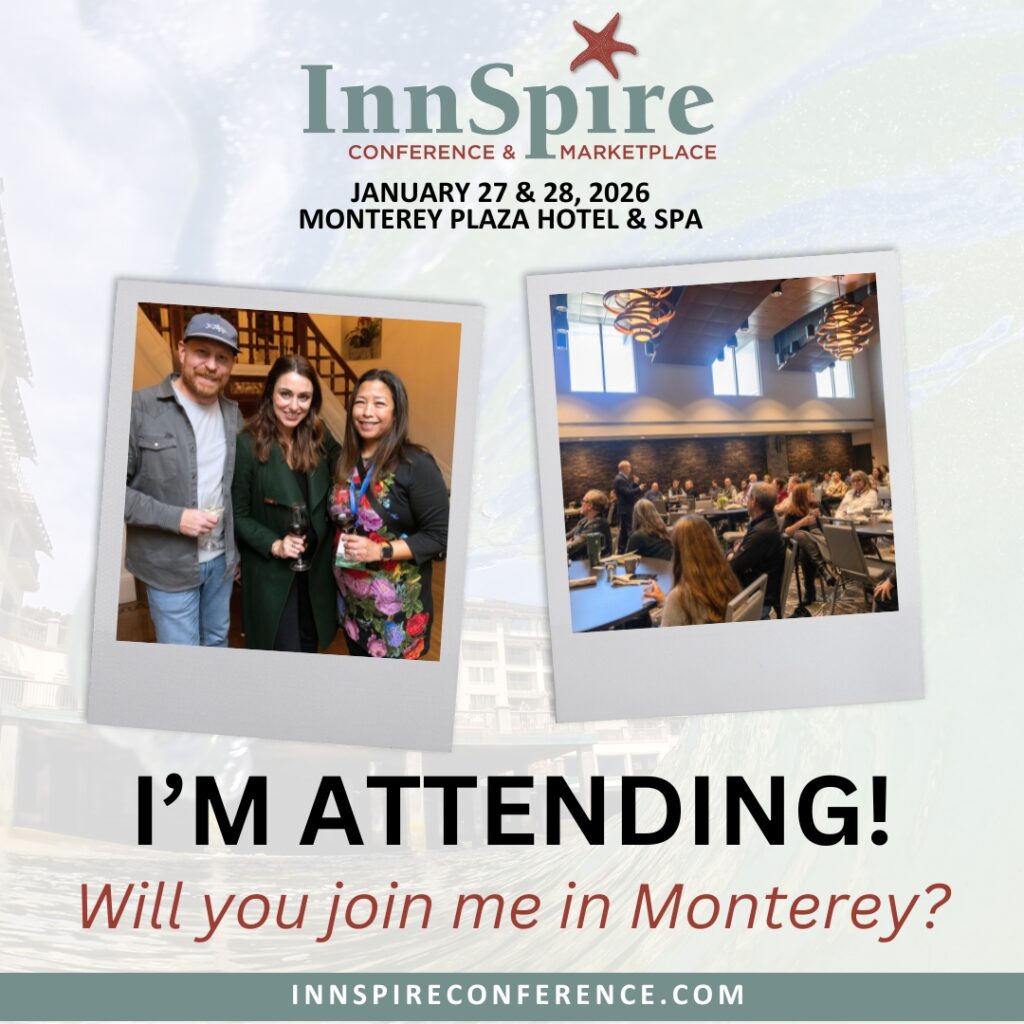 I’m looking forward to the InnSpire Conference & Marketplace in January! Want to join me in Monterey? Learn more and save your spot at InnSpireConference.com.